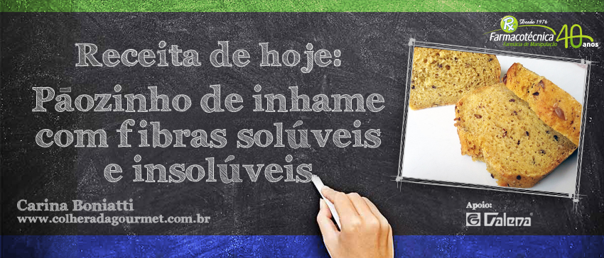A partir de hoje, faremos uma sequência de quatro matérias com receitas de Carina Boniatti no blog da Farmacotécnica. Nesta primeira, aprendemos como fazer um pãozinho de inhame com fibras solúveis e insolúveis, ideal para reduzir a carga glicêmica das dietas sem glúten.